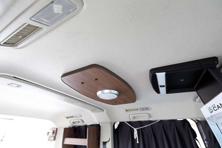 ▲天張りインテリア板はオプション。その奥に見えるサイドカーテンもオプションだ