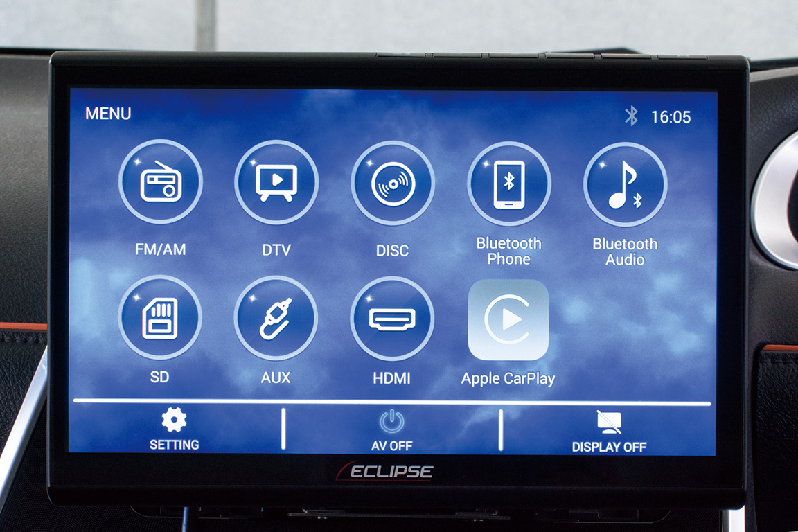 ▲シンプルなアイコンデザインは機能をひと目で把握できるため、カーナビに慣れていない人でも簡単に扱える。操作性の良さはイクリプスAVN歴代モデルの美点といえる