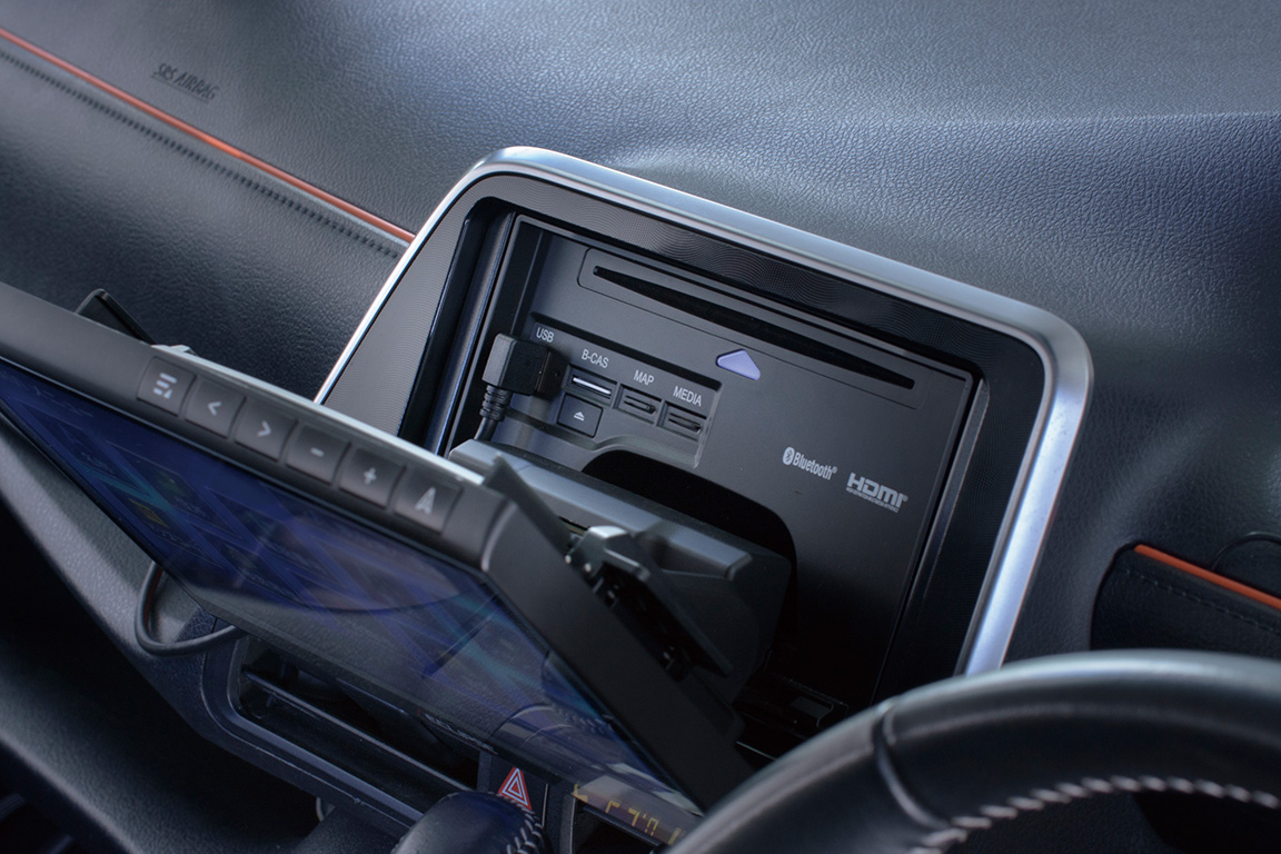▲本体は2DINサイズでDVD/CDプレーヤー、microSDメモリーカードスロットなどを搭載。USB接続端子を前面に備え、使いやすい