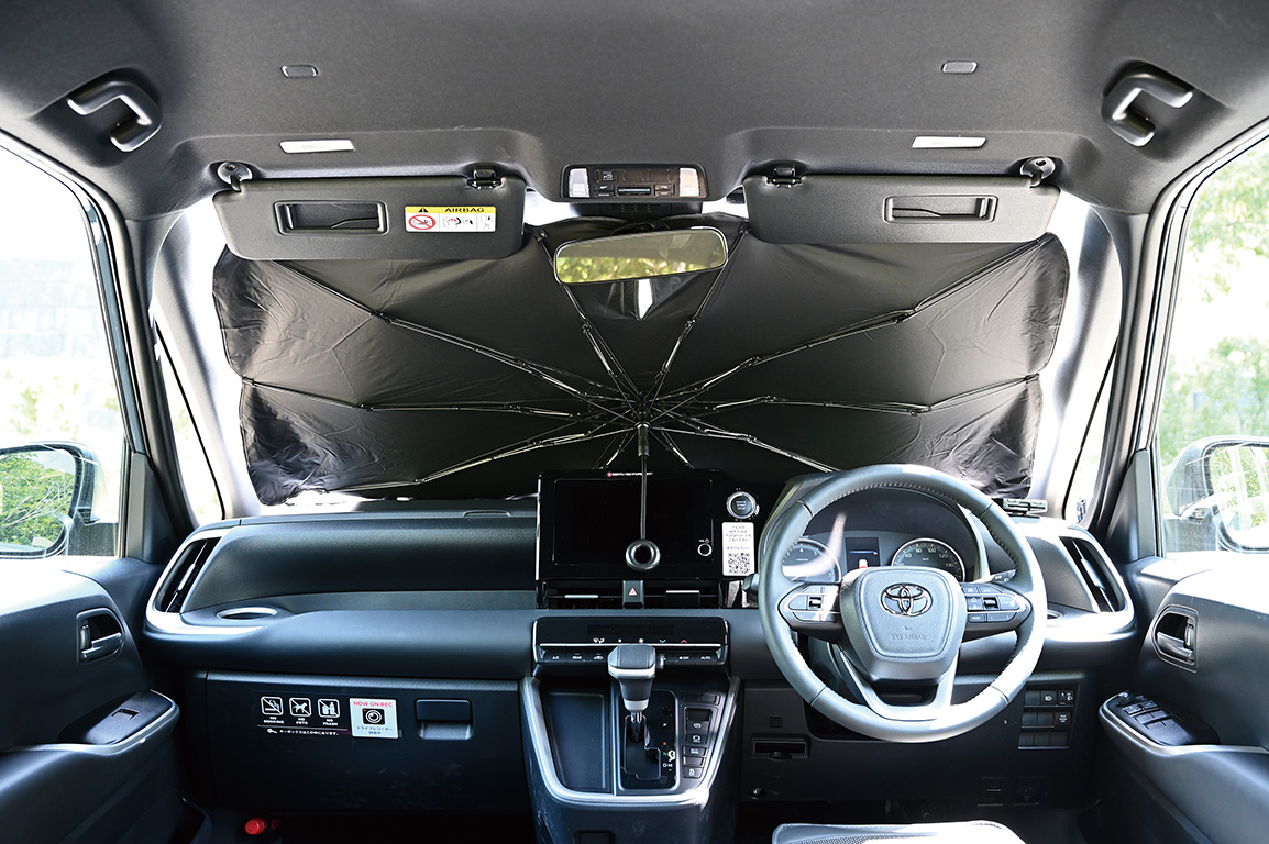▲シャフト部分がヒモになっているので、ダッシュボードに大型モニターが付いていても干渉しにくい