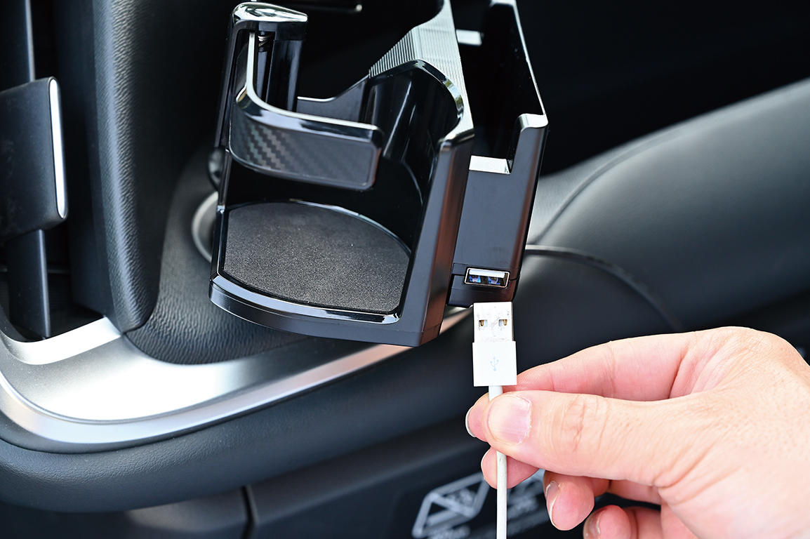 ▲サイドにはUSB-Aポートが1口付いているので、スマホを置きながら充電もできる