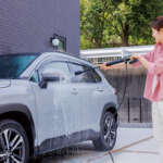 ストレスフリーの洗車が可能だ。本体の洗浄剤吸引ホースを使用すればシャンプー洗浄もOK。