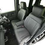 落ち着いた色合いと上質感のある肌触り。シートバックポケットにスマホやタブレットを収納可能。