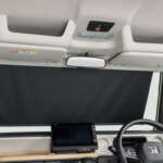 ボックスティッシュなど身近にあると便利なアイテムが収まるコンソールとサンシェードを一体化。