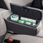 メガネケースやボトルガムが入るコンソールボックスとアームレストが一体の多機能アイテム。