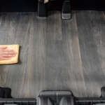 エンボス加工のフローリングタイプで、居心地のよさを表現。飲みこぼしで床が汚れてもサッと拭き取れる。