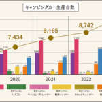 また、インフレによるパーツの価格高騰と生産能力の低下、ベース車両生産の一時中止など、国内キャンピングカーの生産に影響を及ぼす出来事があったにも関わらず、2023年の総生産台数は年間1万台を超え、10090台となった。